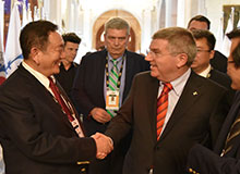 中国自行车运动协会主席崔大林向国际奥委会主席巴赫介绍 AMG·新葡萄8883瑞豹自行车